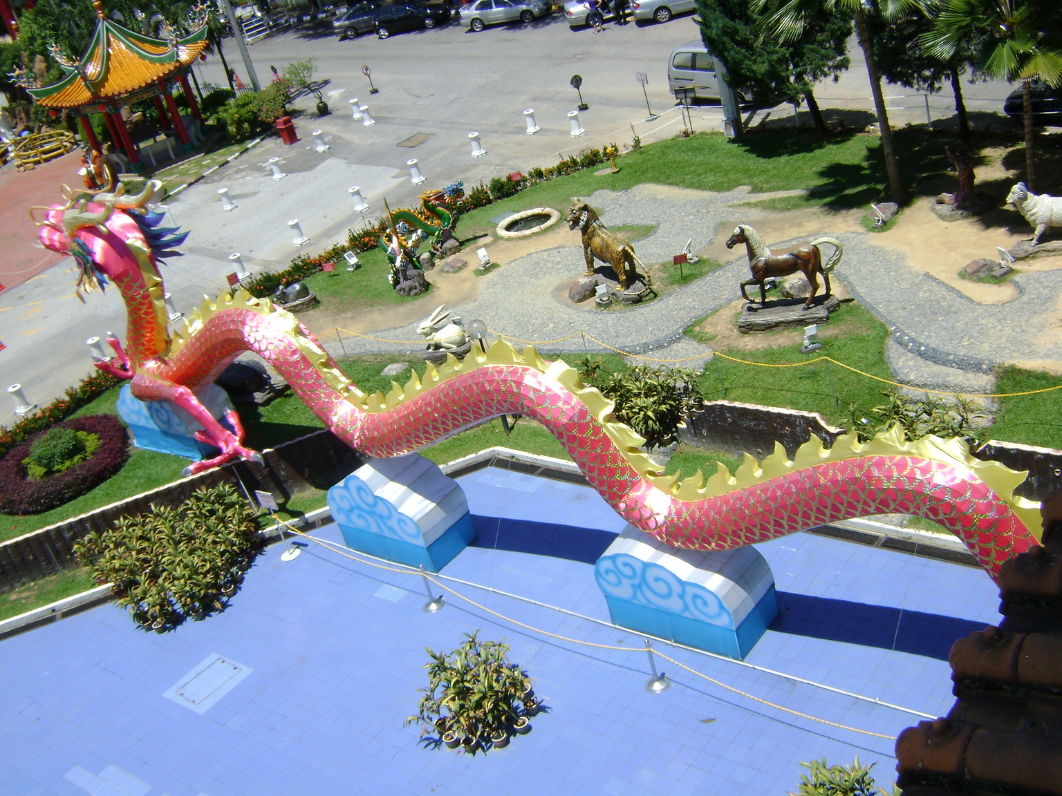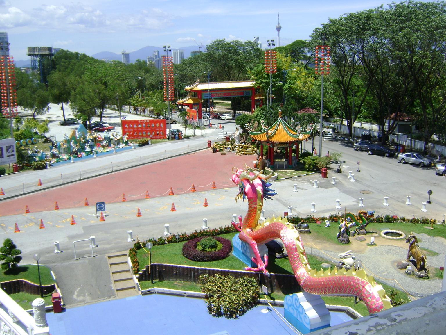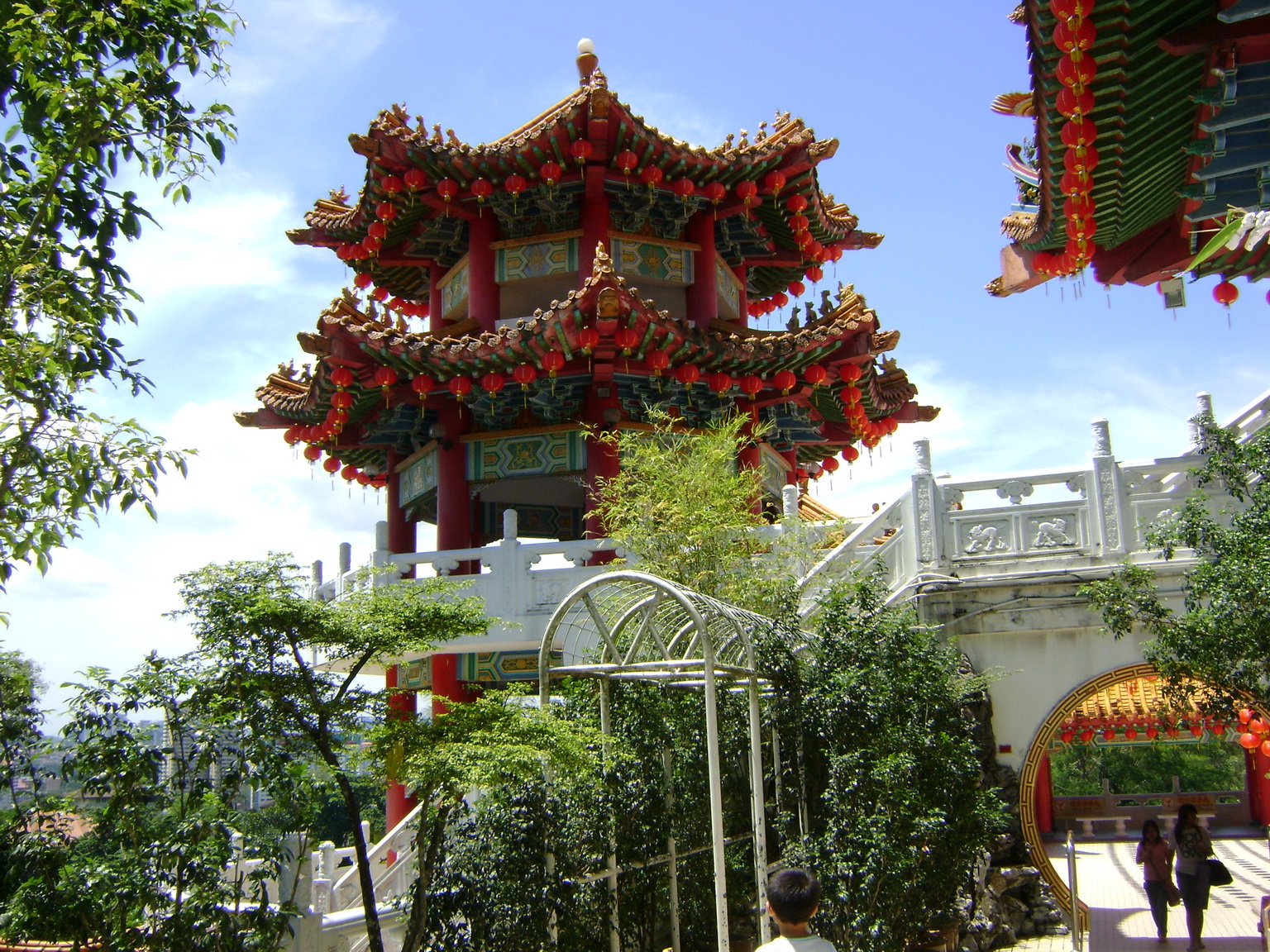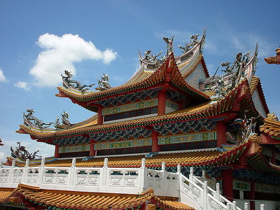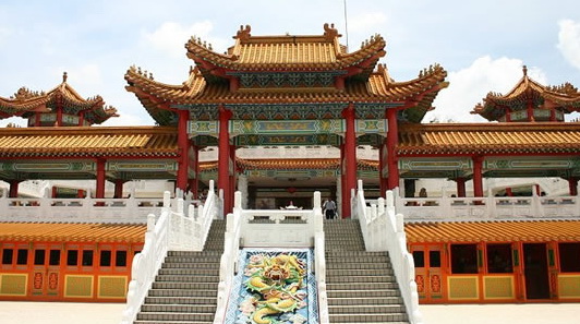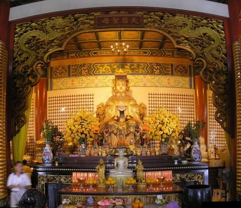 As a popular tourist destination, the Tian Hou Temple is located on Robinson Heights in Kuala Lumpur. The temple, with elements of Buddhism, Taoism and Confucianism, consists of 4 floors. On the first floor, there is a food court. Souvenir stalls are also found. The office is located on the 2nd and 3rd floor while the altar is on the 4th floor. A marriage registration centre is situated next to the temple.